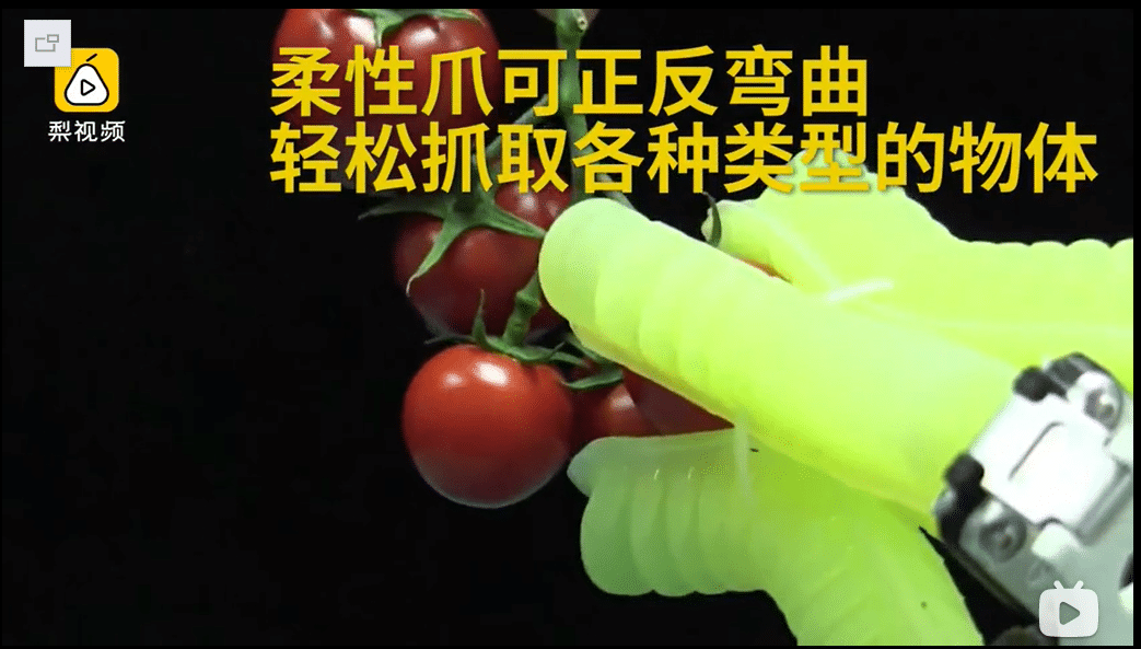 北京航空航天大學的研發團隊,通過軟抓手內部充滿空氣,外部使用彈性材料,可以解決目前工業機器人領域面臨的采摘和抓放上的困難。