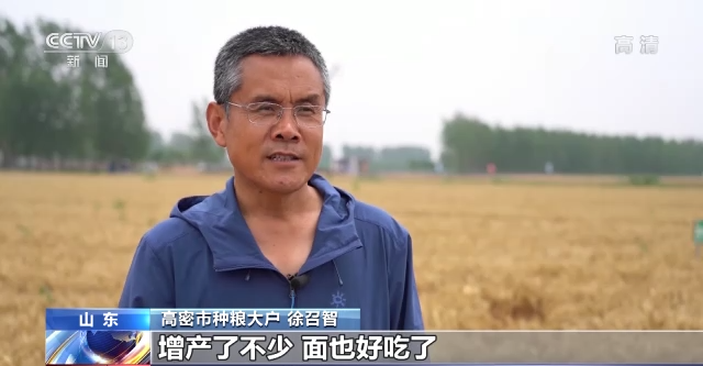 高密市種糧大戶 徐召智:通過都使用有機肥 畝產達到800多公斤,增產了不少,面也好吃了。