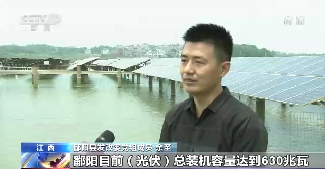 江西鄱陽縣發改委黨組成員 余圣:鄱陽目前光伏總裝機容量是達到630兆瓦,它一年的發電量是達到7億度電。